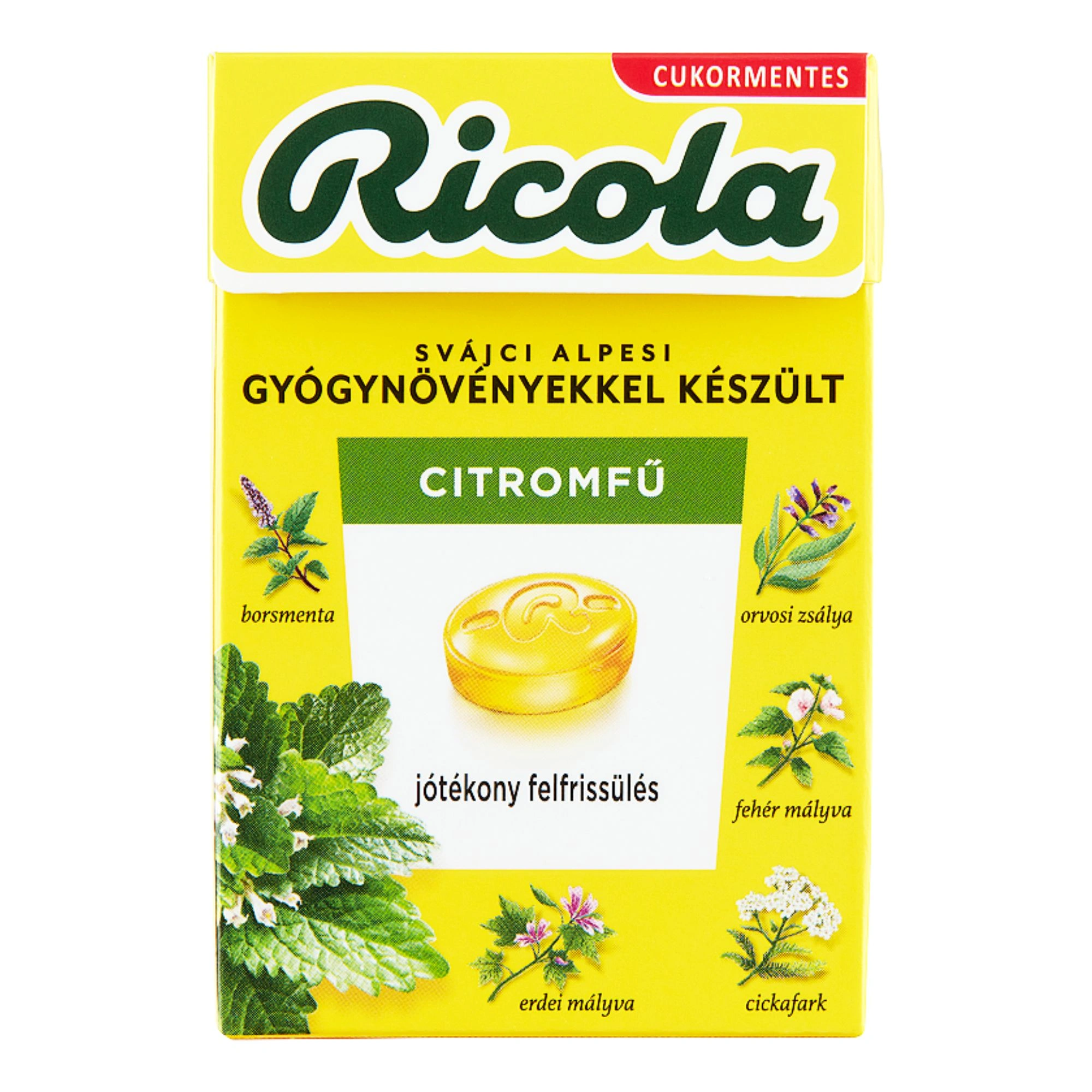 | Ingredients | Sweetener (isomalt), food acid (citric acid), citronella and Ricola herbal mixture extract (0.3%), natural citrus flavorings, beet extract, sweeteners (zteviol glycosides from stevia, thaumatin), peppermint oil, peppermint oil, menthol. |